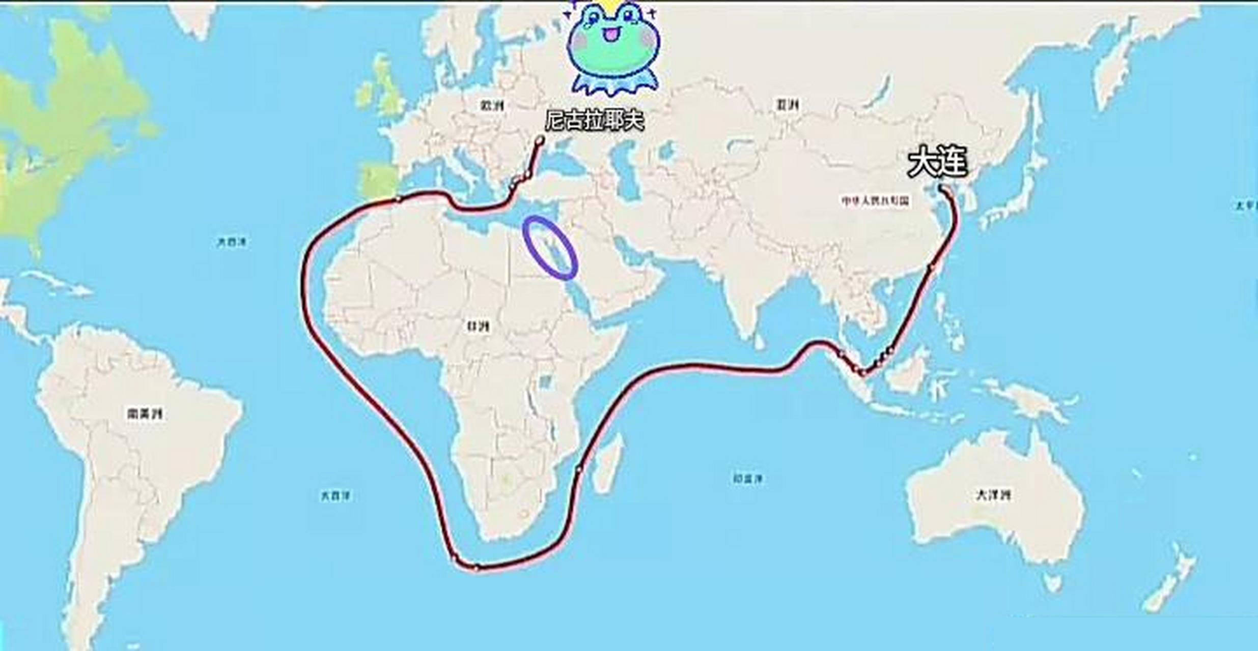 按理说,瓦良格号要回国,最近的路线,是从地中海经过苏伊士运河,进入红海,印度洋,然后经过马六甲海峡,进入中国南海,东海,黄海。。这样的路线。